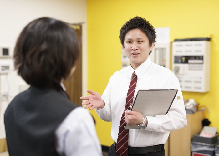 実際のお店に出て、実践・振り返りを繰り返します。トレーナーと先輩社員が近くにつき、見守りながらお客様対応を行います。いざという時は先輩がフォローに入り、分からなかったこと、スムーズにできなかったことを都度確認できるため安心です。また、職務の習得に夢中でお客様への配慮が低下しないよう、知識・技術だけでなく「お客様視点」でのフィードバックを重視しています。