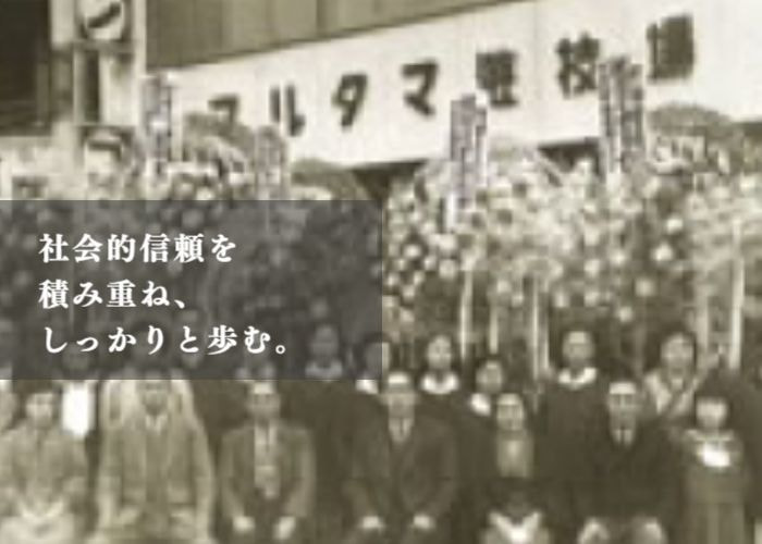 マルタマは、第二次世界大戦終戦の5年後に誕生しました。宮城県で現存するパチンコホールで最も長い歴史があります。広島や長崎が有名ですが、実はここ仙台の街も、大戦時に米軍の空襲をうけ、一帯が焼け野原と化しました。多くの方が住む家やご家族を失い、街は悲哀に満ちていたそうです。そんな光景をみた創業者竹田 吉伸が抱いた、「街や人々に元気や笑顔を取り戻したい。自分たちで立ち上がらなきゃいかん」との思いが会社のルーツとなっています。